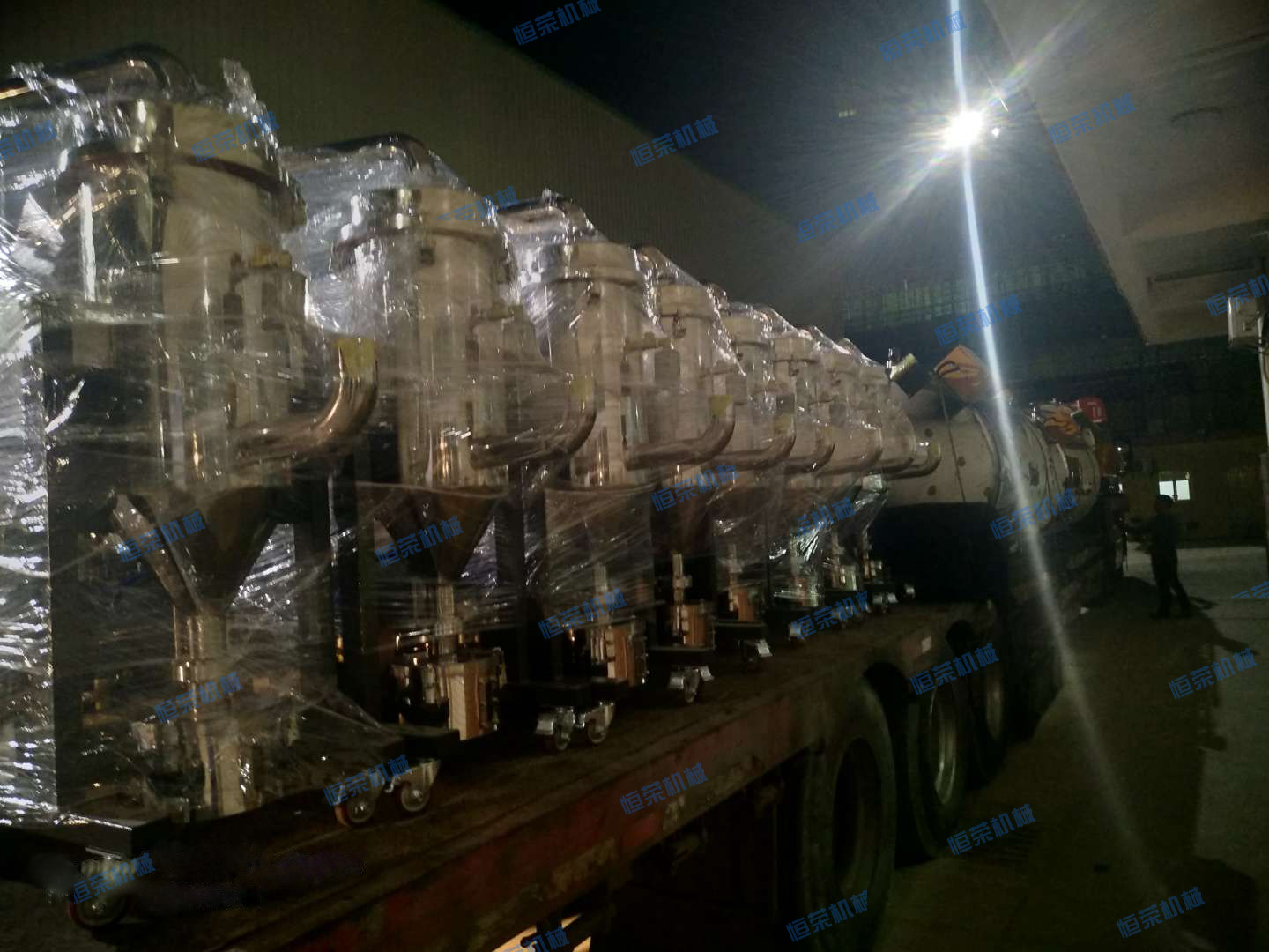 夜深人靜的時(shí)候,也許你已經(jīng)進(jìn)入夢(mèng)鄉(xiāng),而我們恒榮的大后方,卻仍然在打包、裝車,井然有序,有條不紊的忙碌著?。。?月16日廣東佛山某PE薄膜生產(chǎn)商在我司訂了一批中央供料系統(tǒng),經(jīng)過全體員工的共同努力,在4月9號(hào)如期完成各項(xiàng)檢測,整裝待發(fā)!
